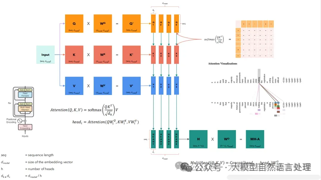 其中, 是输入嵌入的维度, 是头的数量, 是每个头的维度。