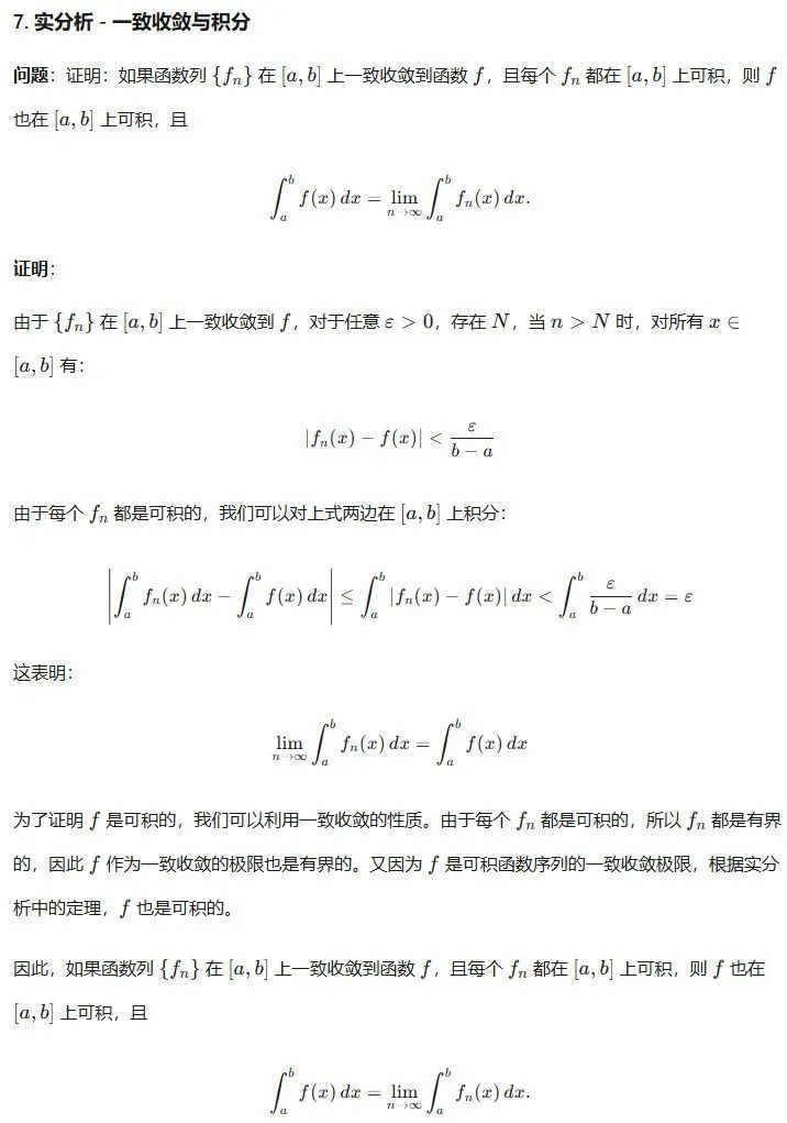 分析学:在实分析、复分析领域的表现同样突出,特别是对高级概念如一致收敛与积分交换的处理非常专业。