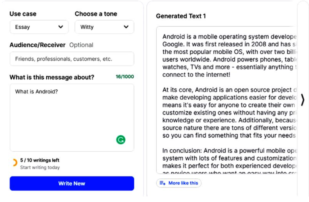 该工具可以用 30 种语言和 20 多种音调书写,以满足需求。默认情况下,还有 40 多个用例可用,甚至可以创建自己的用例,以便它可以给出您需要的确切答案。