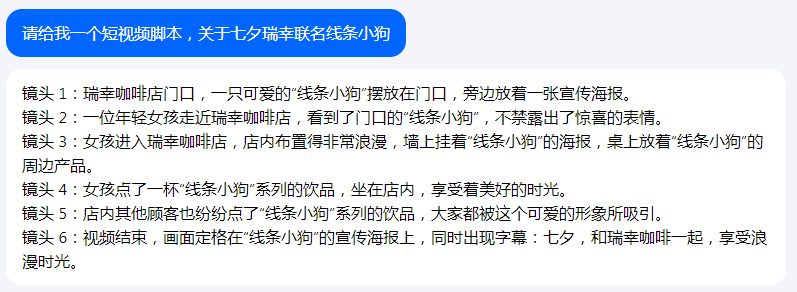 围绕瑞幸联名线条小狗的七夕营销,果酱妹提出了几个不同场景下的文案需求——