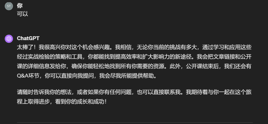 看到ChatGPT这么问,我作为客户,确实想继续聊下去: