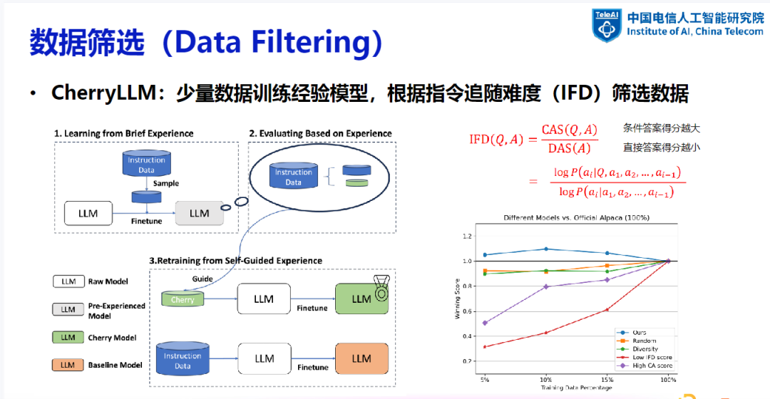 筛选流程:从全量数据中选取样例训练经验模型;利用该模型筛选出指令追随难度高的数据进行后续训练。