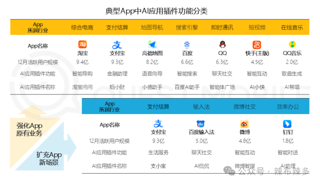 当前的AI插件主要以赋能核心业务和场景为主,也有部分头部app尝试使用插件拓展新的产品使用场景;